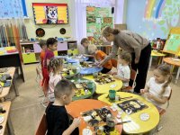 Высокий профессионализм педагогов стал залогом успешного проведения серии открытых занятий для коллег из детских садов. Воспитатель средней группы Юкачева Дарина Олеговна представила коллегам открытый показ занятия «Приключения веселой морковки». Воспитатель, организующий в учреждении изобразительную деятельность, Тарасович Юлия Владимировна мастерски продемонстрировала опыт развития художественных навыков детей средствами изобразительного искусства в процессе занятия в старшей группе по теме «Мой лохматый друг». Воспитатели подготовительной к школе группы Темлякова Анна Анатольевна и Сладких Анна Ивановна презентовали эффективные методы и приемы познавательного развития старших дошкольников через организацию разных видов деятельности в процессе открытого занятия с элементами ТИКО-конструирования «Поможем зимующим птицам: инженеры-орнитологи на защите пернатых».
